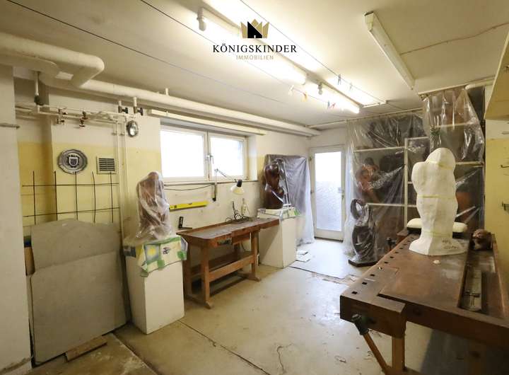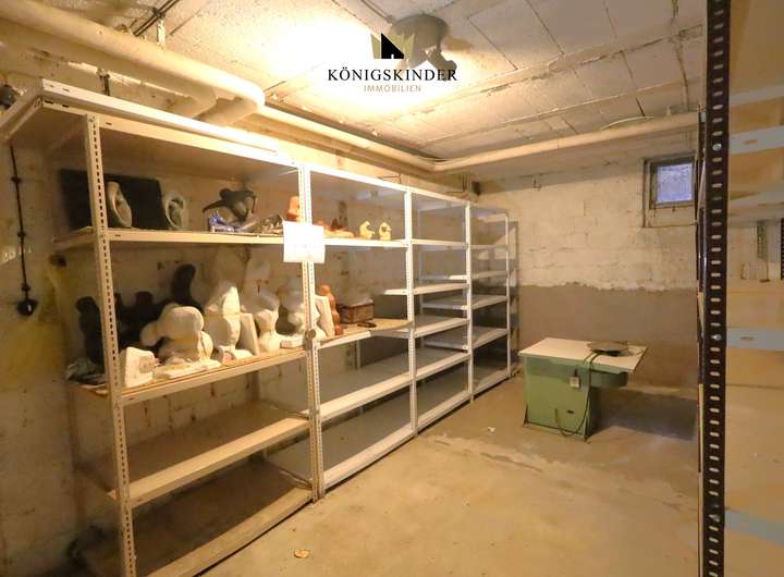 Der Keller wurde komplett als Künstleratelier von der ehemaligen Eigentümerin, einer weithin bekannten Bildhauerin, als Atelier und Lager für Skupturen genutzt. Dort befinden sich auch alle Anschlüsse für Gas, Wasser und Strom.