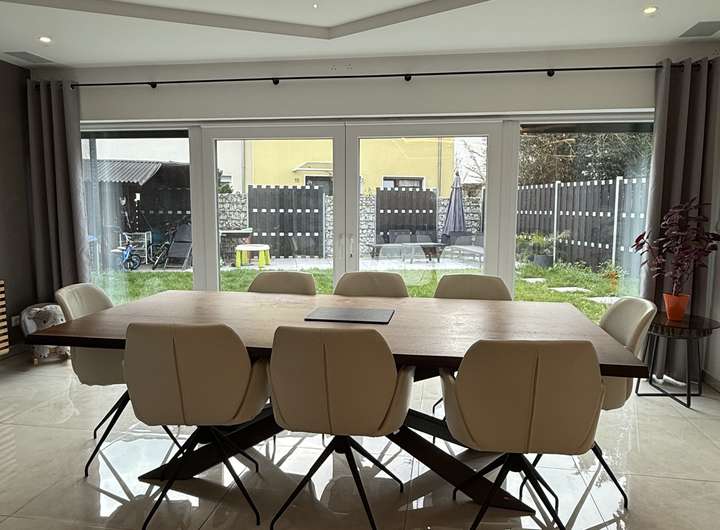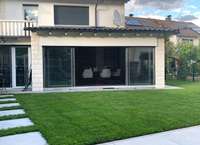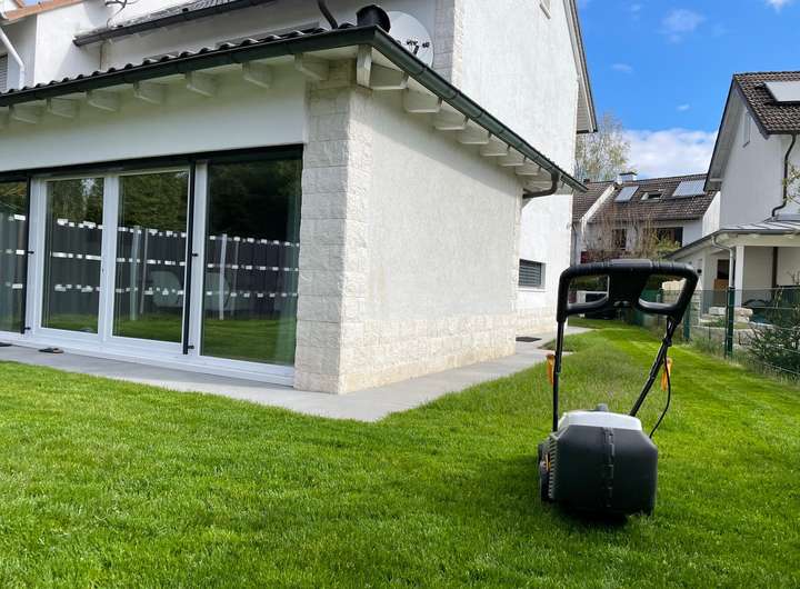 Im Erdgeschoss wurde eine komplett neue Fußbodenheizung installiert. Hier erwarten Sie eine neuwertige Küche (Kaufpreis 23.000 €), ein großzügiger Wohn- und Essbereich mit 44 m² sowie bodentiefe Glasfronten, die viel Licht hereinlassen und den Blick in den Garten öffnen. Über große Schiebetüren gelangen Sie direkt auf die Terrasse. Zusätzlich befindet sich im Erdgeschoss ein beheizbarer Wintergarten mit Zugang zum Garten. Dieser wurde 2021 vollständig erneuert und mit einer App-steuerbaren Bewässerungsanlage sowie einem App-gesteuerten Rasenmäher ausgestattet.