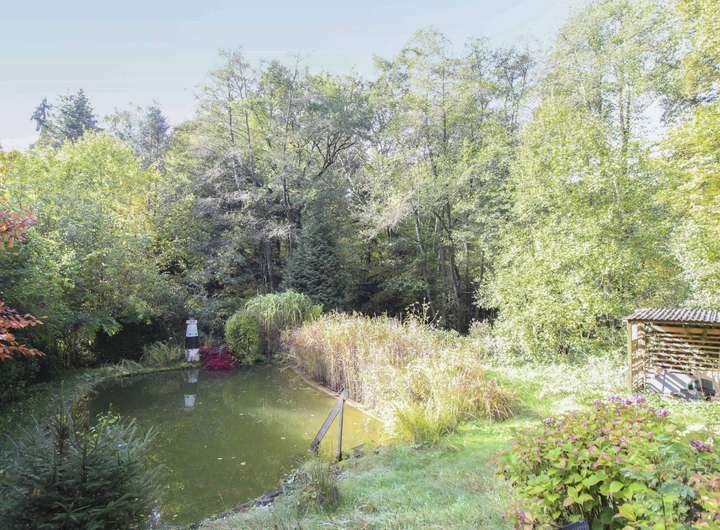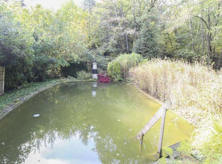 + Tolle Außenbereiche: Der uneinsehbare Süd-Garten auf ca. 887 m² Grund lädt zum Verweilen ein - eine Terrasse sowie ein Teich bereichern das Erlebnis