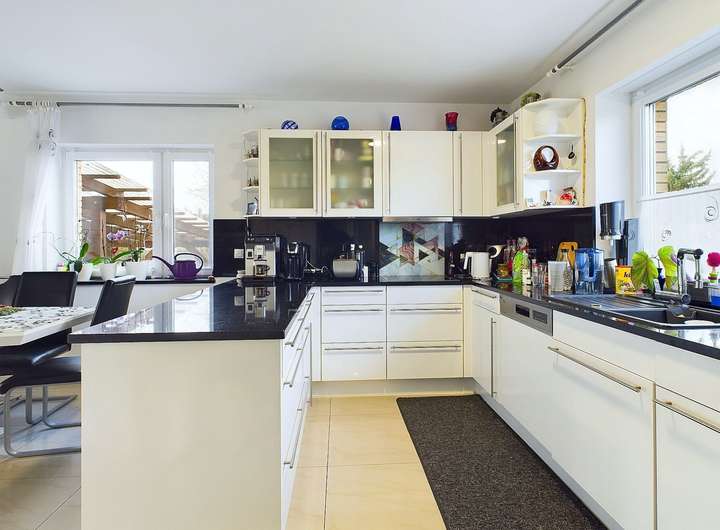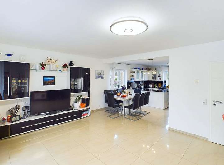 Im Herzen des Hauses steht die offene, modern ausgestattete Küche – ein einladender Treffpunkt für Kochen, Gespräche und gemeinsames Genießen. Eine Doppelgarage sowie zwei zusätzliche Außenstellplätze garantieren komfortables Parken ohne Kompromisse. Der voll unterkellerte Bereich bietet praktischen Stauraum und zusätzliche Fläche für Hobbys, Fitness oder ein Homeoffice.