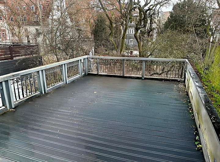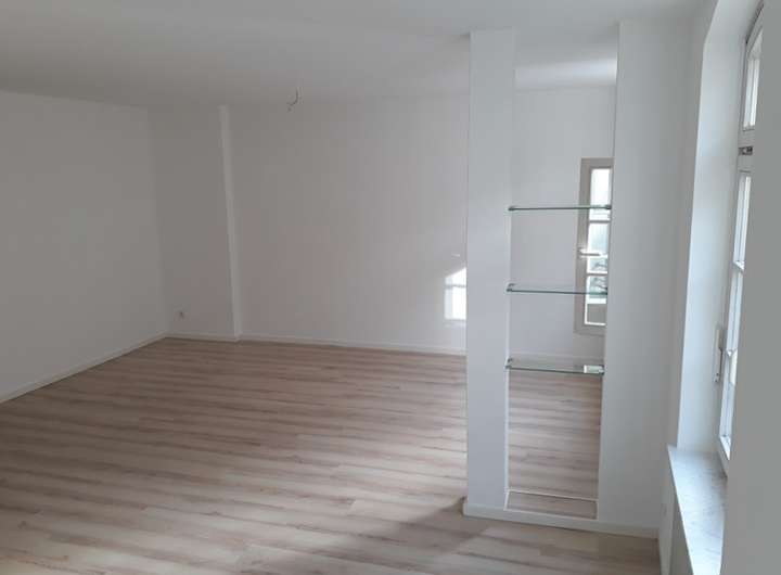 Im 1. Obergeschoss befindet sich eine attraktive 3 Zimmer-Wohnung mit ca. 98,51 m² Wohnfläche. Die Wohnung verfügt über eine Diele mit Gäste-WC, 3 Zimmer, eine Küche mit Balkon zum Innenhof sowie eine ca. 30 m² traumhaften Terrasse und ein schickes Tageslicht-Bad.