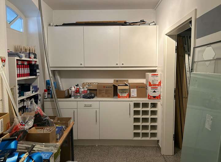Der Laden im EG ist ebenso mit weißen Innentüren und Granitboden versehen.