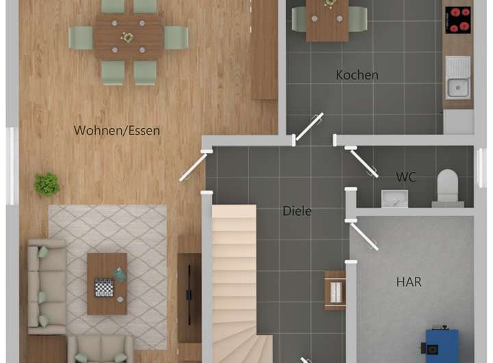 Mit einem separaten Arbeits- bzw. Gästezimmer im Erdgeschoss eignet es sich sowohl als Wohnhaus mit separaten Arbeitszimmer für Selbständige als auch als gastfreundliches Haus für den lieben Besuch.