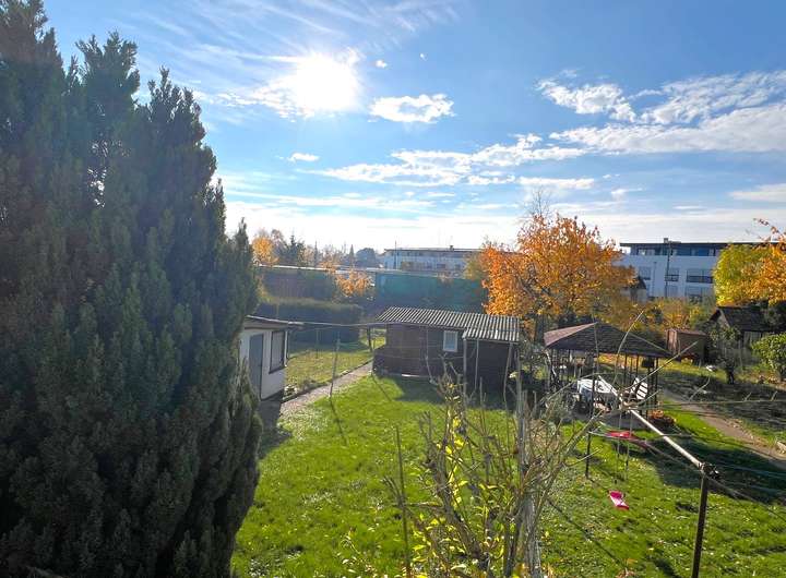 Zwischen Schrebergärten und einer Neubauwohnanlage mit hochwertigen Mietwohnungen liegt das beschriebene Anwesen mit schönem Garten. Insbesondere für Familien mit Kindern geeignet, zudem ruhig gelegen, da an einer Nebenstraße!