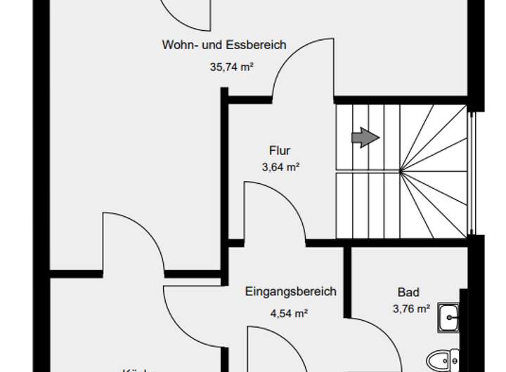 Das Erdgeschoss erstreckt sich über eine Fläche von ca. 60 m² und setzt sich wie folgt zusammen: