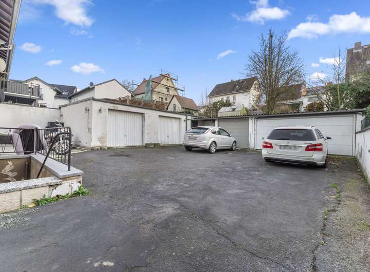 Ein besonderes Merkmal ist die außergewöhnlich gute Parksituation: Insgesamt stehen mindestens 8 Stellplätze zur Verfügung, davon 5 in Garagen. Zusätzliche Außenflächen bieten Erweiterungspotenzial, z. B. für weitere Stellplätze, Wohnnutzung oder eine spätere Aufteilung.