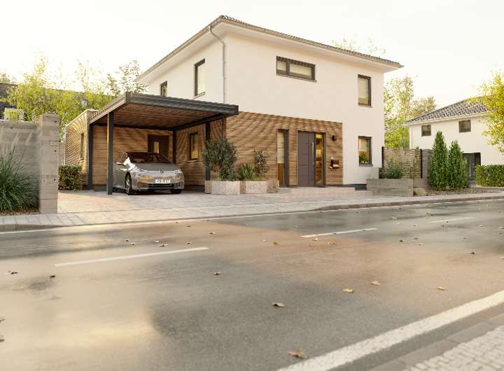 Die kubische Form ist der Klassiker im Stadthausdesign und prägt auch das Aussehen unseres Stadthaus Flair 124. Im Inneren setzt sich der urbane Stil fort: der großzügige Wohn- und Essbereich erstreckt sich über die gesamte Hausbreite und ist das Herzstück des Hauses. Große Fenster lassen viel Tageslicht hinein und führen gleich hinaus zu Ihrem Wohnzimmer im Grünen – der Terrasse. In der Küche haben Sie viel Platz für gemeinsame Kochabende und das Familienfrühstück unter der Woche. Auch das Obergeschoss zeigt sich im klaren Baustil einer modernen Stadtvilla. Hier befinden sich drei Räume, die Sie als Schlaf-, Kinder-, Gäste- oder Arbeitszimmer nutzen können. Dank großer Fenster wirken alle Zimmer hell und freundlich. Schlicht, schick, mit vielen Details und klarer Linie – in unserer Stadvilla werden Sie sich wohlfühlen.