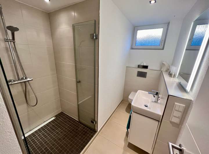 - Duschbad mit bodentiefer Rain-Shower-Dusche