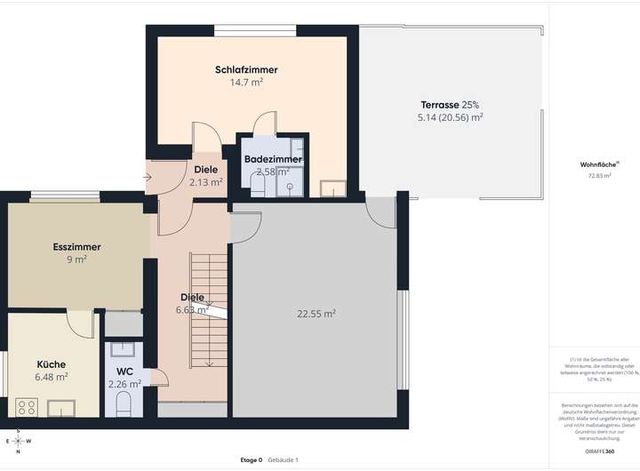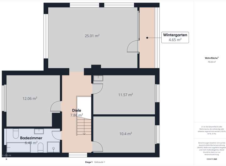mit WC, sowie Dusche und Kochnische. Dieses kann separat bewohnt werden. Die Wohnfläche beträgt im EG 76,92 qm.