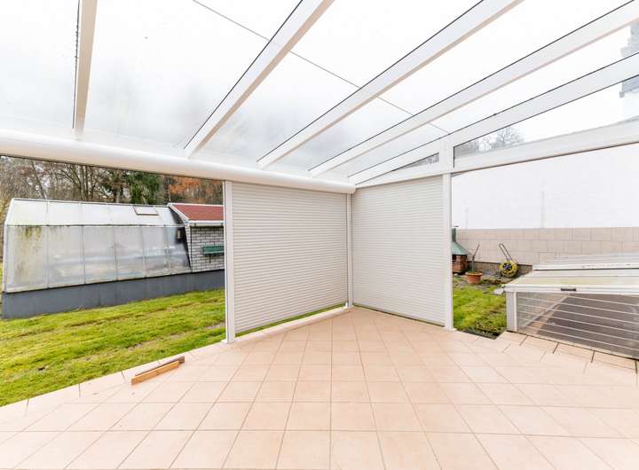Eine elektrische Markise bringt Schatten im Wintergarten. Im Garten steht ein kleines Gewächshaus und ein besonderes Gebäude das ursprünglich als „Bienenhaus“ genutzt wurde. Einbauküche. Außentor mit Zufahrt zu Garage elektrisch gesteuert.