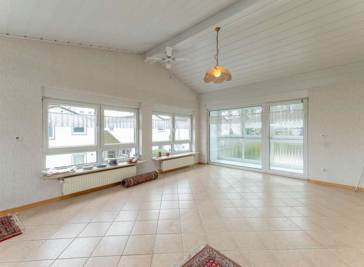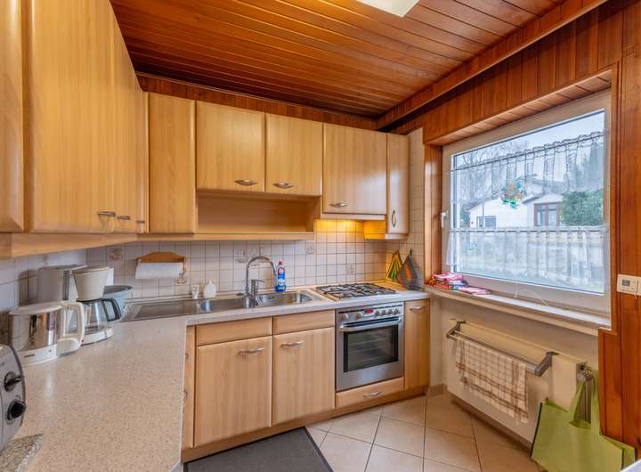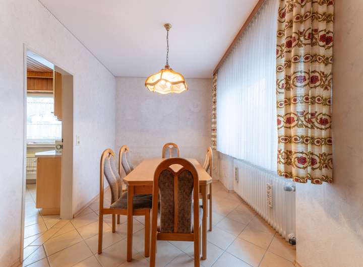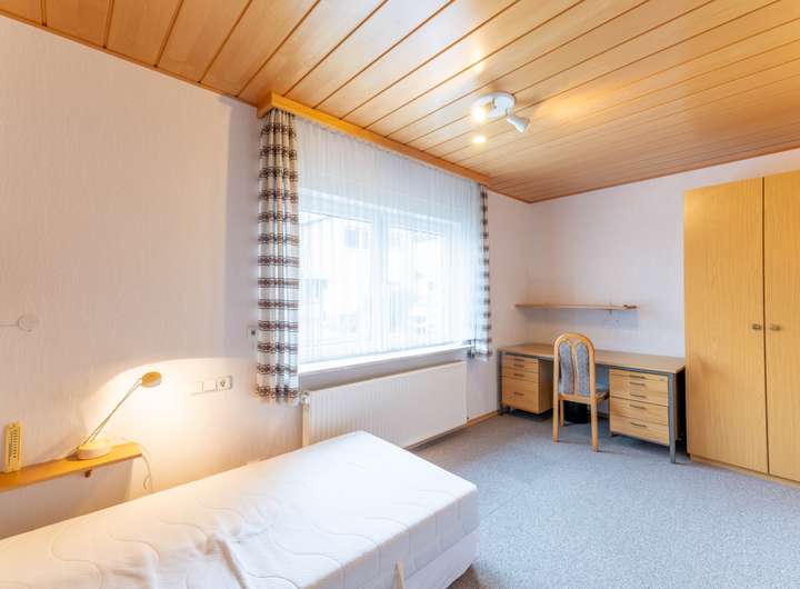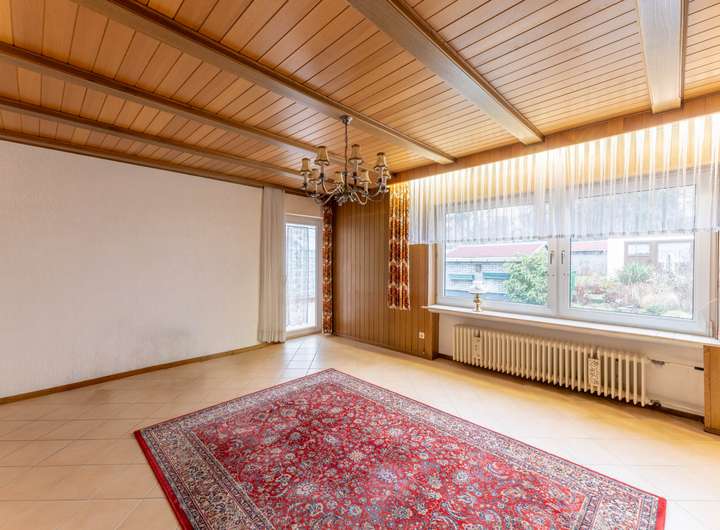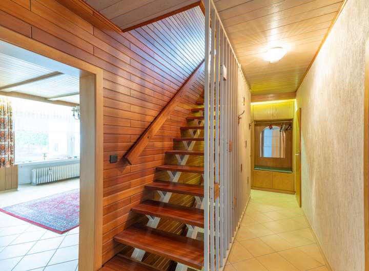 Das Wohngebäude wurde 1974 in massiver Bauweise erstellt und 1995 erheblich durch einen Quergiebel erweitert. Mit der Erweiterung wurde zusätzlich eine große, überdachte Außenterrasse mit ca. 20 qm Fläche errichtet. Die Terrasse kann mit elektrischen Rollläden von allen Seiten geschlossen werden. Beheizt wird das Haus mit einer Gasheizung. Diese wurde 2007 durch eine Solarthermie - Anlage ergänzt. Die Fenster wurden in 2007 ebenfalls erneuert.