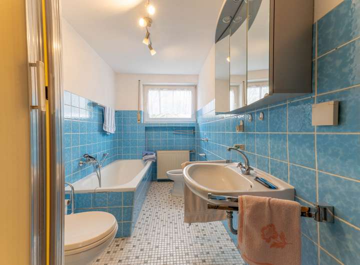 3 Zimmer, Bad mit Wanne, Dusche, WC und Bidet.