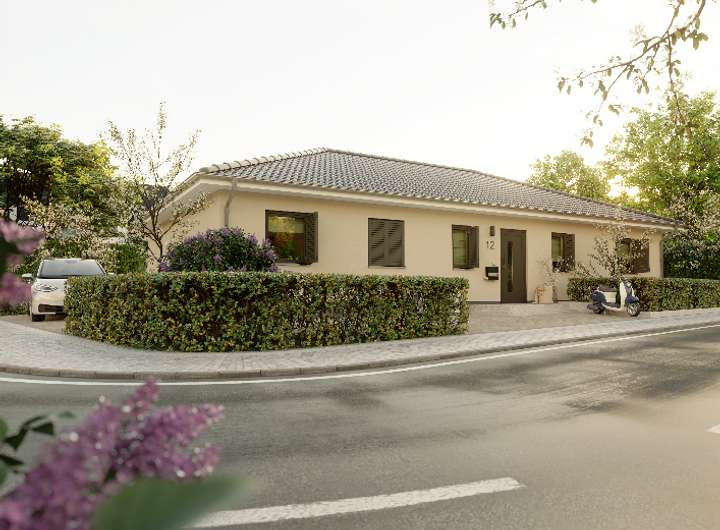 Unser Bungalow 131 hat es in sich – zwei Kinderzimmer, zwei Bäder, Schlafzimmer und Gästezimmer – viel Wohnfläche und clever nutzbarer Stauraum für die ganze Familie. Frühstücken Sie in der großen Wohnküche mit ihren Lieben und planen gemeinsam den Tag. Das traumhafte Wohnzimmer mit seinen großen Fenstern ist der perfekte Ort zum Entspannen, bietet freien Blick in Ihren Garten und mit wenigen Schritten sind Sie auf Ihrer Terrasse im Grünen. Dank bodentiefer Fenster sind die Wohnräume lichtdurchflutet und geben ein besonderes Wohngefühl. Das geräumige Schlafzimmer rundet das Raumangebot ab und machen Ihr Traumhaus zum Begleiter in allen Lebensphasen. Ihr Badezimmer gestalten Sie als Ihre ganz persönliche Wohlfühloase. Das Gäste-WC bietet Platz genug für eine Dusche und entspannt Ihr Zusammenleben.