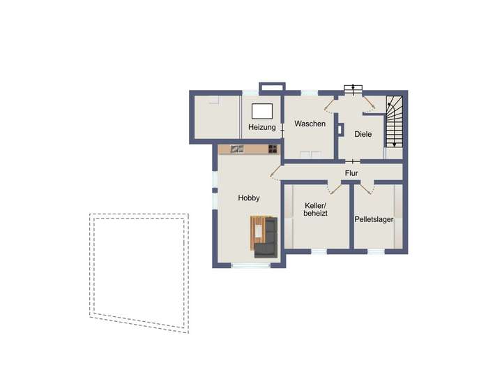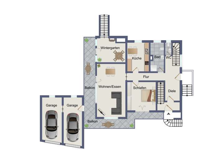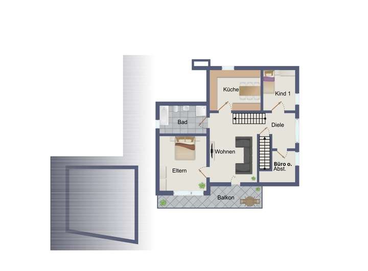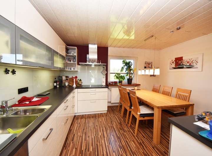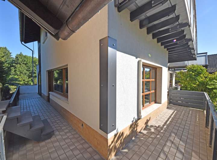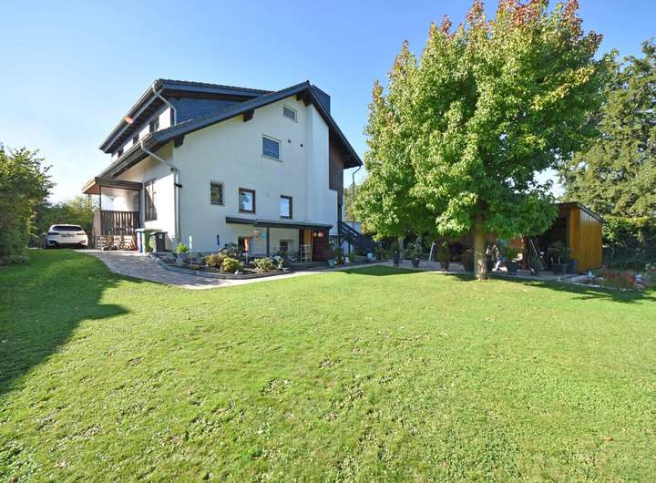 Sie finden im Erdgeschoss eine 2 bis 4 Zimmer-Wohnungsmöglichkeit, welche durch den Wintergarten in eine 3-Zimmer-Wohnung umgebaut werden könnte. Ein 4. Zimmer (Büro) könnte evtl. über dem Garagendachboden ausgebaut werden. Dieser Garagendachboden grenzt direkt an die RundumTerrasse der Erdgeschosswohnung.