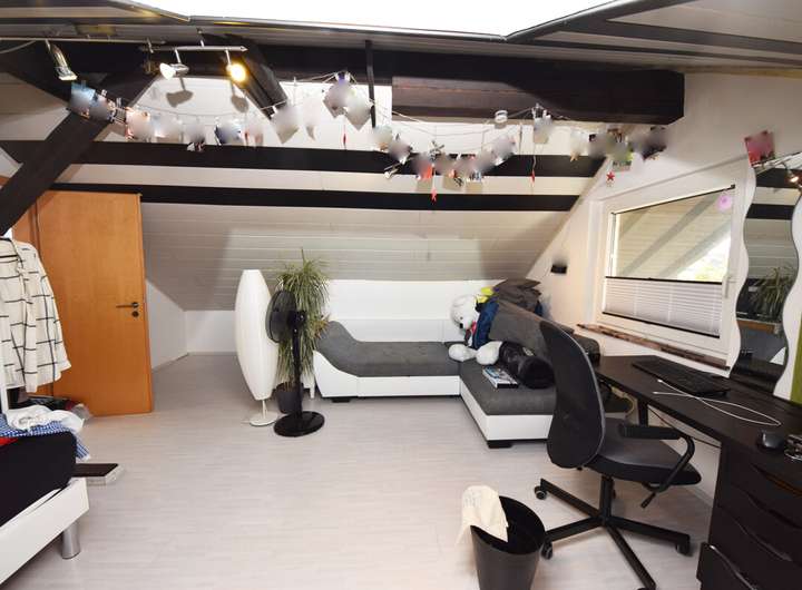 Hier finden Sie auf 2 Ebenen (inkl. Spitzboden) eine 5-6 Zimmer-Wohnung mit einer Gesamtfläche von ca. 125m².