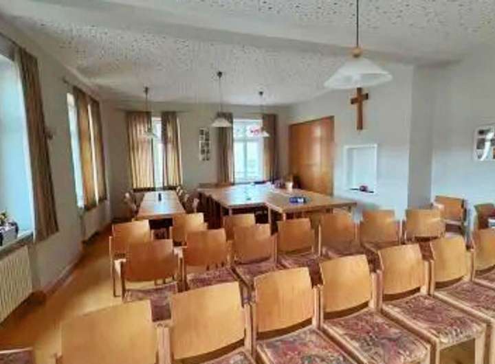 Das Gebäude wurde bisher von der Evangelischen Kirchengemeinde Gau-Weinheim als Gemeindehaus genutzt und ist entsprechend ausgestattet, es ist kein Badezimmer, sondern WC/Waschbecken vorhanden, der großer Saal im EG wurde als ehemaliger Gemeindesaal genutzt. Ein PKW-Außen-stellplatz ist vorhanden.