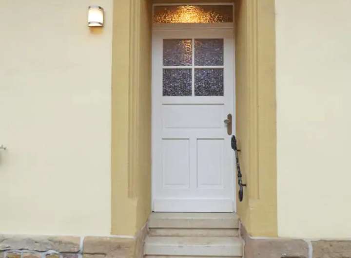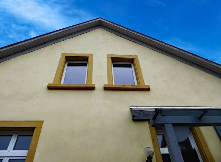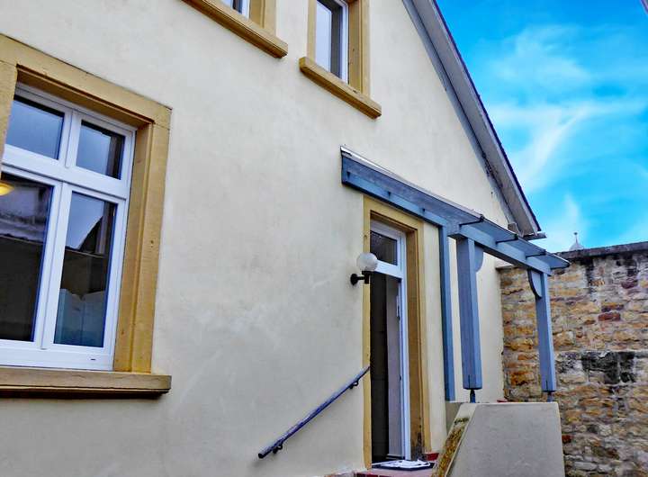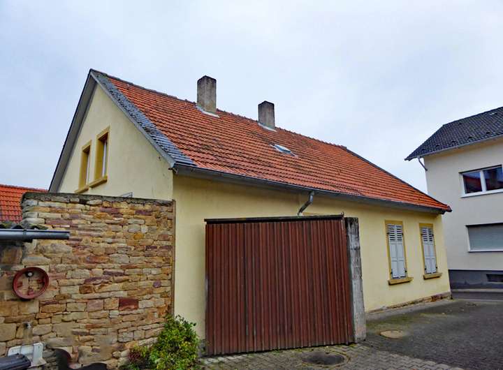 1-geschossiges Haus mit Dachgeschoss, klassische Fassade mit Klappläden und Feldstein-Sockel, nicht unterkellert sowie Anbau/Schuppen (unterkellert als Gewölbekeller) und Innenhof, Baujahr ca. 1920, in 2006 wurden Modernisierungsmaßnahmen durchgeführt..