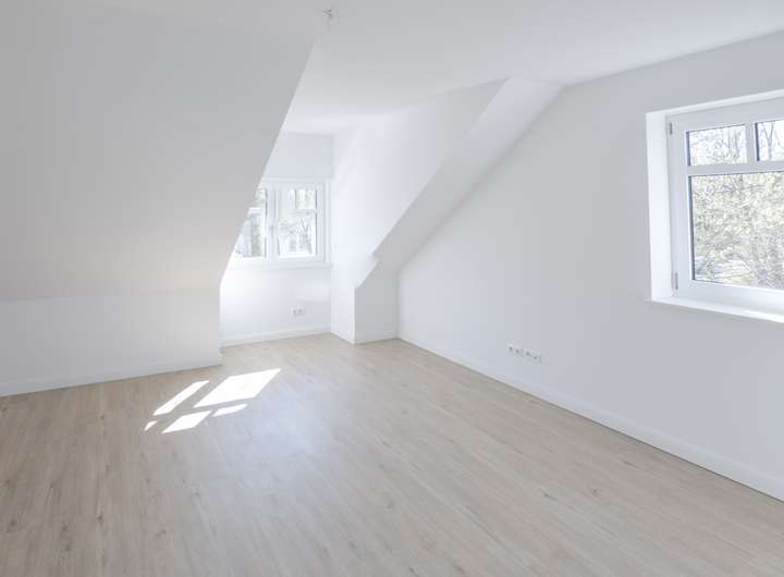 Das Dachgeschoss bietet zwei weitere, großzügige Schlafzimmer sowie das dritte Badezimmer mit Dusche. Zudem hat man vom Flur aus über eine wärmegedämmte Raumsparttreppe den Zugang zum Spitzboden, der weitere, praktische Staufläche bietet.