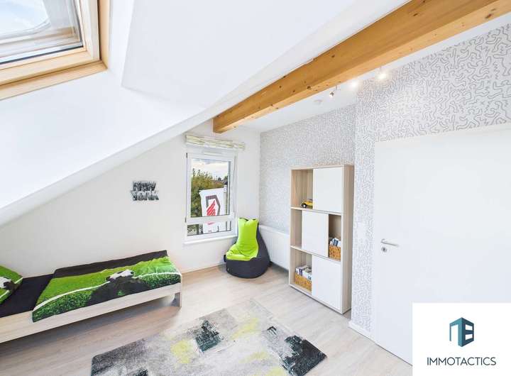Die Doppelhaushälfte verfügt über 5 Zimmer, 4 geräumige Schlafzimmer und 1 Badezimmer. Ein separates Gäste-WC sorgt für zusätzlichen Komfort. Der Garten lädt zu entspannten Stunden im Freien ein und bietet viel Privatsphäre.