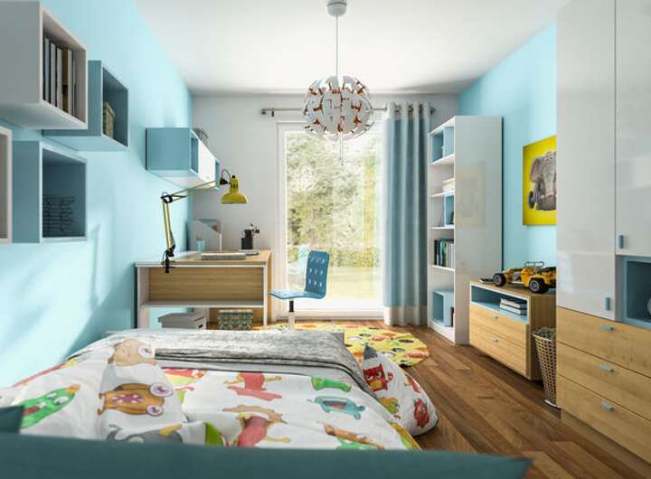 Familienleben auf einer Ebene - Der Bungalow 131 hat es in sich – 5 Zimmer, zwei Kinderzimmer und zwei Bäder – viel Wohnfläche und clever nutzbarer Stauraum für die ganze Familie. Die kluge Raumaufteilung bietet eine große Wohnküche in der Sie mit ihren Lieben Freizeit und Essen genießen können. Das traumhafte Wohnzimmer mit seinen großen Fenstern ist der perfekte Ort zum Entspannen, bietet freien Blick in Ihren Garten und mit wenigen Schritten sind Sie auf Ihrer Terrasse im Grünen.