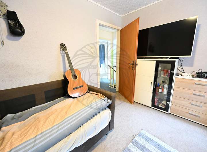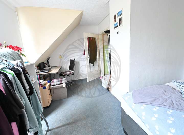 Die linke Doppelhaushälfte beherbergt eine großzügige Maisonettewohnung (ca. 70,1qm Wohnfläche + ca. 14,3qm Balkon = ca. 77,4qm Gesamtwohnfläche), bestehend aus zwei Schlafzimmern, einem Wohnzimmer, einem Bad, einer Küche, einem Kellerraum sowie einem Balkon im Dachgeschoss. Diese Wohneinheit befindet sich größtenteils in einem renovierungsbedürftigen Zustand, bietet jedoch viel Potenzial für individuelle Gestaltung.