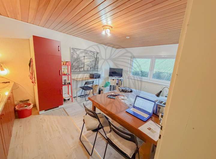 Im Souterrain wurde eine 1-Zimmer-Wohnung (ca. 26,5qm Wohnfläche + ca. 8qm Wintergarten = ca. 30,5qm Gesamtwohnfläche) geschaffen, die sich in einem gepflegten Zustand befindet. Sie verfügt über einen Wintergarten, der einen besonderen Rückzugsort bietet und die Attraktivität der Einheit zusätzlich steigert. Ebenso ist diese mit einer verhältnismäßig geräumigen Einbauküche ausgestattet.