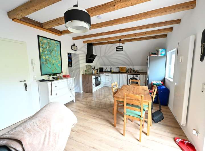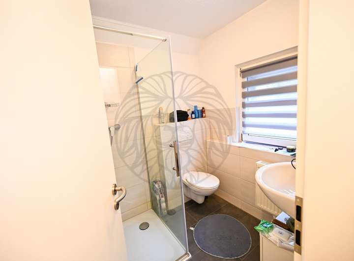 Für die Wohnung im 1. Obergeschoss (ca. 43qm Wohnfläche + 8qm Balkon = ca. 47qm Gesamtwohnfläche) wurde ein neuer Balkon angebaut, der zusätzlichen Wohnkomfort bietet. Das Dach in der rechten Haushälfte ist noch nicht voll ausgebaut. Bei der Sanierung wurde bereits ein großes Dachfenster unter dem Giebel oberhalb der Wohnung im 1. OG installiert, dadurch kann zu einem späteren Zeitpunkt ein weiteres Zimmer im Dachgeschoss für die Wohnung im 1. OG im Maisonette Stil entstehen. Auch die Wohnung im Erdgeschoss (ca. 42 Wohnfläche + ca. 13,5qm Balkon = ca. 48,5qm Gesamtwohnfläche) verfügt über einen eigenen Balkon. Die modernisierte Ausstattung, die hellen Räume und die zeitgemäße Raumgestaltung machen diese Haushälfte sofort bezugsfertig und äußerst attraktiv.