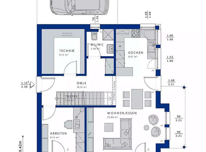 Im angegebenen Preis ist das Grundstück bereits enthalten. Gerne planen wir den Hausbau gemeinsam mit Ihnen auch auf Ihrem bereits vorhandenen Grundstück. In einem ausführlichen Beratungsgespräch ermitteln wir für Sie gerne eine detaillierte Gesamtkostenaufstellung. Das Angebot ist unverbindlich und freibleibend, exklusive der Baunebenkosten wie z.B. Hausanschlüsse, Außenanlagen... Abbildungen und Grundrisse zeigen Extras! Das Haus ist gerechnet " Zur Ausstattung fertig"