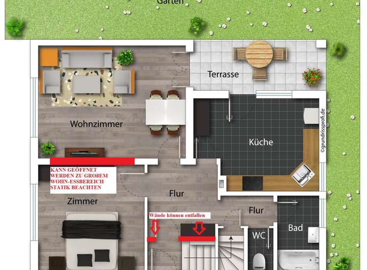 Aktuelle Mieten ohne Nebenkosten: EG. € 625.- DG. € 645.-.