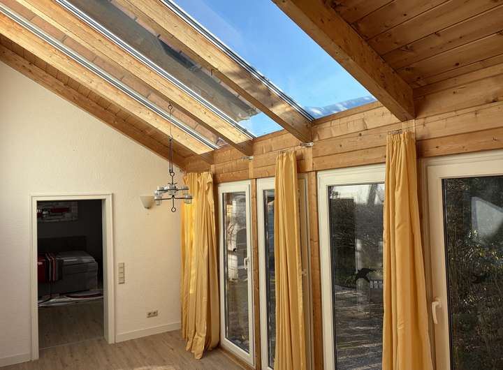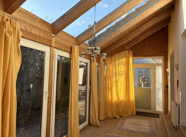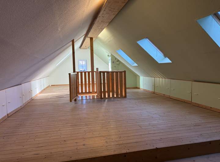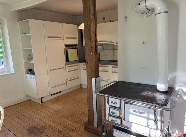 Dieses charmante massiv gebaute Einfamilienhaus wird Sie begeistern, denn angefangen bei dem sehr guten Zustand, der Lage und dem Grundstück ist alles so, wie Sie es sich schon lange gewünscht haben. Das Haus selbst wurde 1999 komplett entkernt und komplett neu aufgebaut und mit einem Anbau versehen. Im Zuge dieser wurden Elektroleitungen, Heizungsleitungen, ein neuer Dachstuhl mit neuer Dacheindeckung inkl. Isolierung und Ringanker, neue Fenster und vieles weitere komplett erneuert. Auch wurde die Therme 2015 erneuert. Beim Betreten fällt dies aber auch schon an dem Zustand des Hauses auf. Durch den Wintergarten hat man jetzt im Erdgeschoss viel Licht und Sonne was ein sehr angenehmes Wohngefühl ergibt. Gleich auf der linken Seite befindet sich die Wohnküche, welche einer Einbauküche und einem zusätzlichen Essplatz mit einem Tisch für 4 Personen Platz bietet. Der aktuelle Ofen, welcher sich in der Küche befindet, kann mit Holz befeuert werden und ist laut den Eigentümern weiterhin nutzbar, da dieser als Kochstelle gilt. Gehen Sie aus der Küche wieder heraus, kommen Sie in den Wohnbereich mit dem davorliegenden Wintergarten. Hier ist in Verbindung mit dem Wintergarten ein gemütlicher Platz, an dem Sie perfekt Relaxen können. Gehen Sie in den Wintergarten weiter kommen Sie auf der linken Seite in das Badezimmer und den dahinterliegenden Heizungsraum. Im neuen modernen Badezimmer aus 2025 stehen Ihnen ein Waschtisch, ein WC und eine Dusche sowie Stellplatz für die Waschmaschine und den Trockner zur Verfügung. Gehen Sie nun wieder aus dem modernen Badezimmer heraus und nach links kommen Sie in das Schlafzimmer. Hier ist viel Platz für ein Doppelbett und einen großen Kleiderschrank. Gehen Sie nun in den Eingangsbereich des Hauses und die Treppe nach oben. Hier kommen Sie in das Dachgeschoss. Hier befindet sich ein großes Studio, welches sehr gut mit Dachflächenfenster belichtet wird. Durch die Größe des Dachstudios kann dieses auch in zwei Zimmer aufgeteilt werden, siehe hierzu auch die Grundrisse, womit Sie dann insgesamt 5 Zimmer in diesem Haus haben. Im hinteren Bereich des Studios kommen Sie in ein Kinderzimmer mit einem eigenen Tageslichtbad. In diesem stehen Ihnen ein Waschtisch, eine Dusche und ein WC zur Verfügung. Der schöne Garten bietet den perfekten Rahmen für das Haus, zwei Autos finden vor dem Haus ihren Platz. Im Garten befindet sich ein oberirdischer Gastank mit einem Inhalt von 2.750Liter der vom Anbieter übernommen werden kann. Das Haus ist mit einem Kriechkeller teilunterkellert.