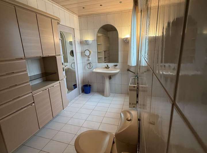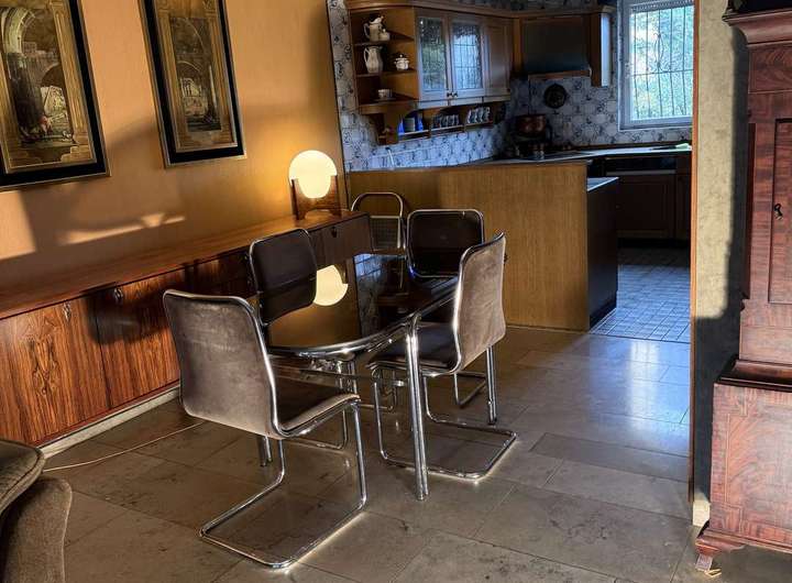 Die Ausstattung ist derzeit einfach, bietet aber großes Potenzial für Individualisierung und Modernisierung. Das Haus verfügt über einen Keller, der zusätzlichen Stauraum bietet, sowie ein praktisches Gäste-WC. Die Einbauküche ist im Kaufpreis enthalten .