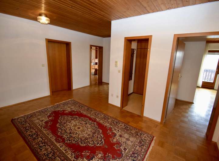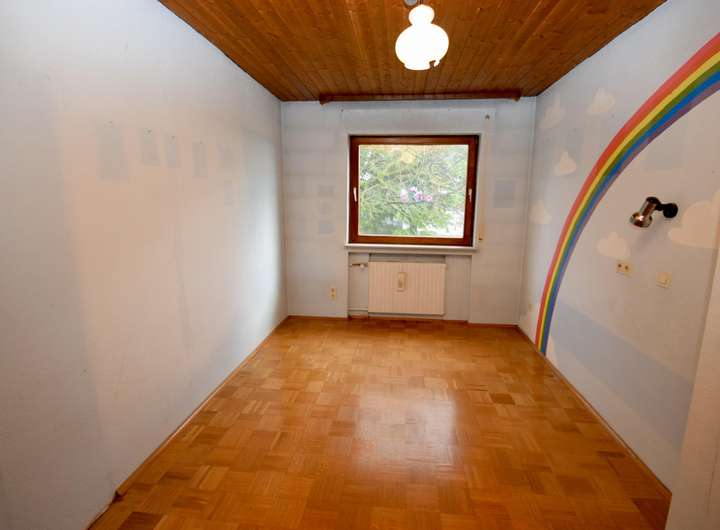 Das Erdgeschoss bietet einen Eingangsbereich mit Abstellkammer, Wohnzimmer, Küche, Tageslichtbad mit separatem WC, vier Schlafräume und einen Südbalkon.
