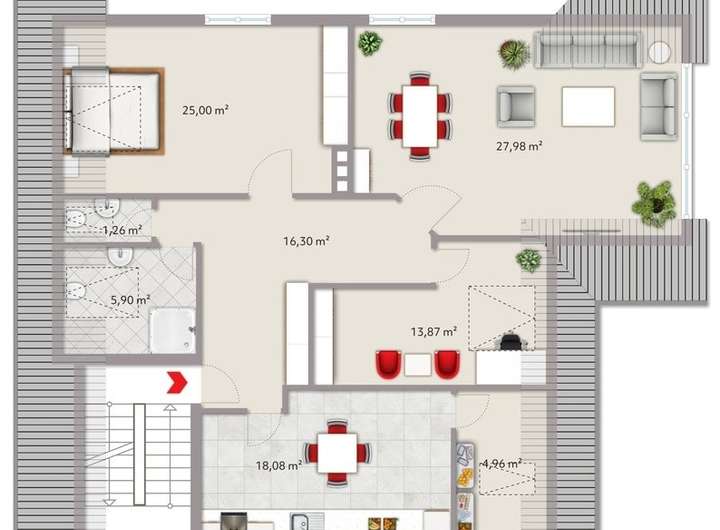Sofern ein Ausbau realisiert wird, kann gem. der Pläne aus 1988 zusätzlicher Wohnraum von ca. 110m² Wohnfläche gewonnen werden. Zuleitungen wurden bereits in der Bauphase ins Dachgeschoss gelegt.