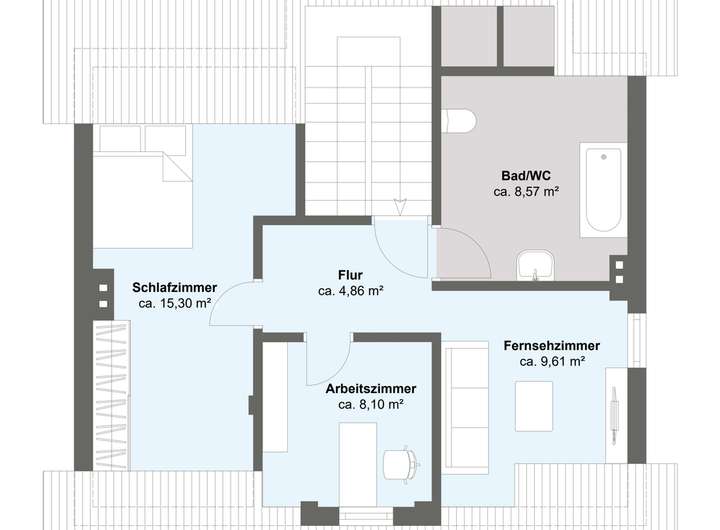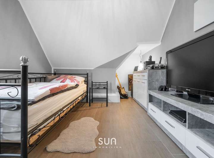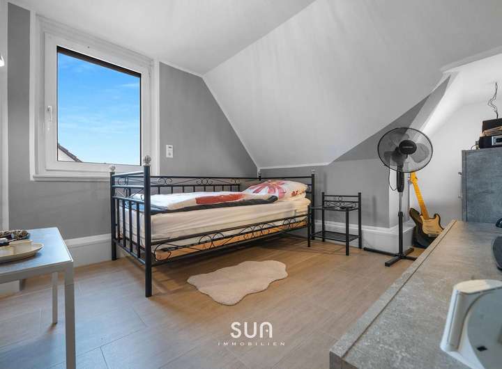 Highlight: Das ausgebaute Dachgeschoss bietet eine vollwertige, eigenständige Wohneinheit – mit eigenem Bad, Küche und separatem Zimmer. Perfekt für zwei Generationen, erwachsene Kinder, Homeoffice oder zur Vermietung.