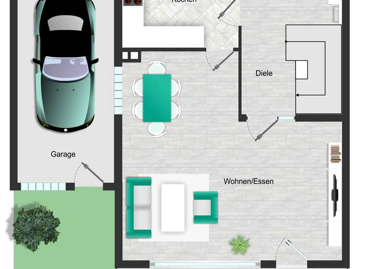 + Garage am Haus mit Zugang zum Garten + Stellplatz