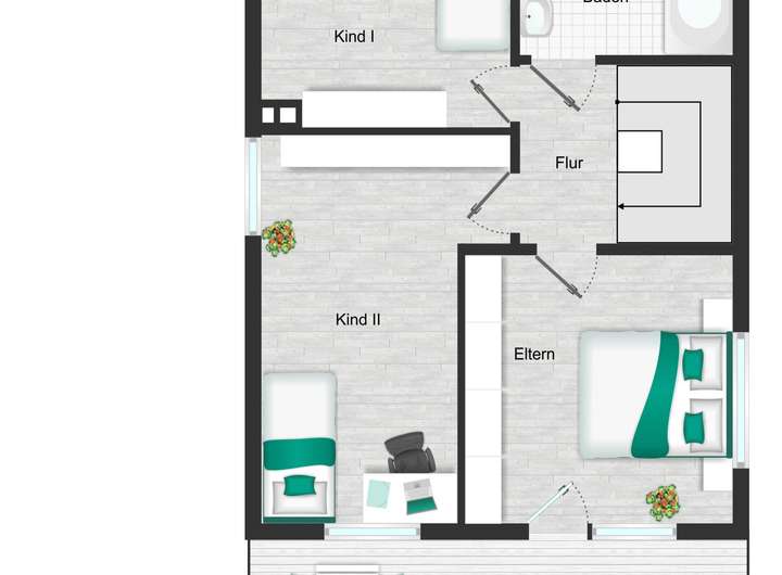 Das Obergeschoss überzeugt mit drei gut geschnittenen Zimmern, die als Schlaf-, Kinder- oder Arbeitszimmer vielseitig nutzbar sind. Ein geräumiges Tageslichtbad rundet diese Ebene ab.