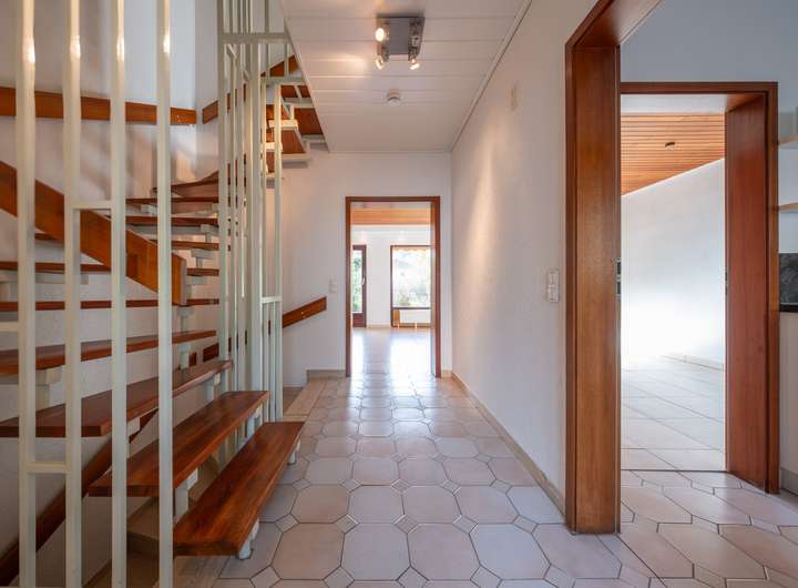 Dieses einladende Reihenendhaus aus dem Jahr 1975 liegt in einer der gefragtesten Wohnlagen von Hofheim-Lorsbach – ruhig, umgeben von Natur und gleichzeitig in Bahnhofsnähe. Schon beim Betreten spürt man die harmonische Atmosphäre, die dieses Haus zu einem echten Wohlfühlort für Familien macht.