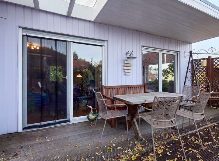 Dieses im Jahr 1984 errichtete Ein- bis Zweifamilienhaus wurde im Jahr 2004 durch einen Anbau in Holzständerbauweise erweitert und bietet heute eine Wohnfläche von rund 163 m².