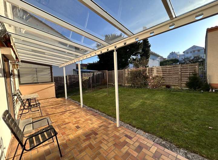 Besonders hervorzuheben ist die große Garage, die nicht nur Platz für ein Fahrzeug bietet, sondern auch zusätzlichen Stauraum für Fahrräder, Werkzeuge oder Hobbyequipment. Der Außenbereich präsentiert sich ebenso gepflegt und lädt mit seinem Garten zum Entspannen und Genießen ein.