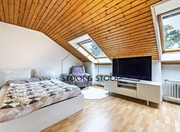 Das Dachgeschoss überzeugt durch seine vielseitige Nutzung. Ein weiteres Schlafzimmer, ideal als Elternschlafzimmer oder Gästezimmer, ein zweites Badezimmer mit kleinem Boiler