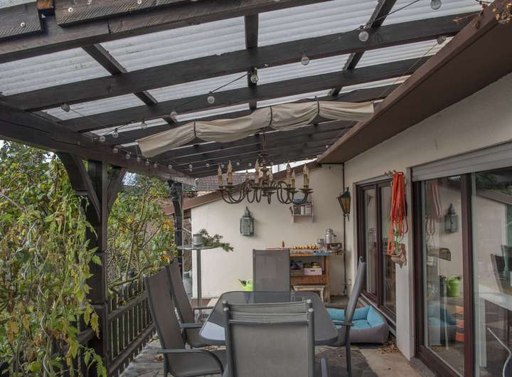 Partyraum / Wohnzimmer 2 mit separatem Zugang sowie Ausgang zur überdachten Terrasse und in den Garten.