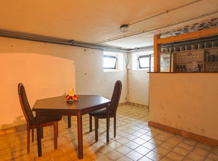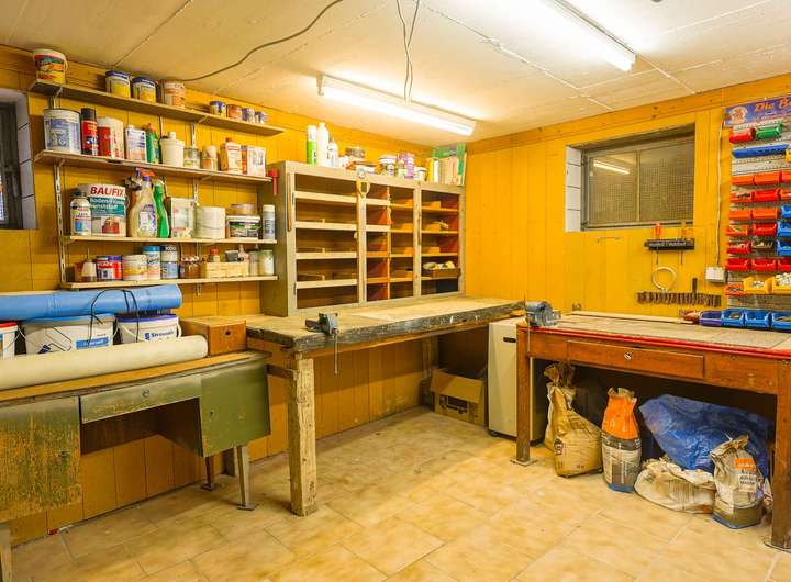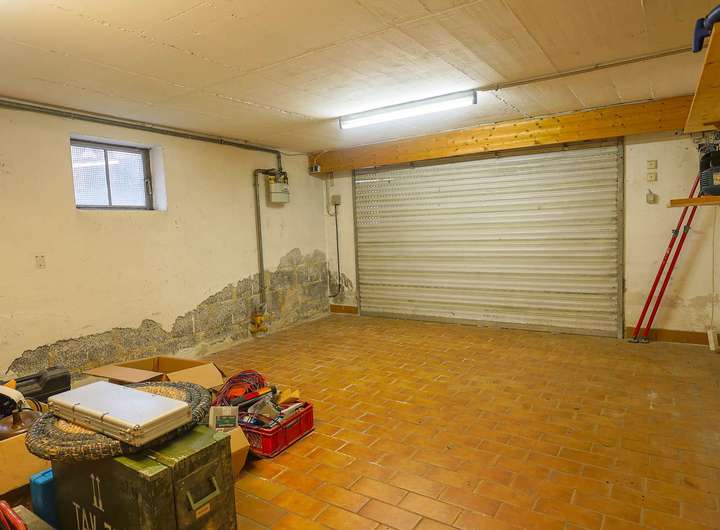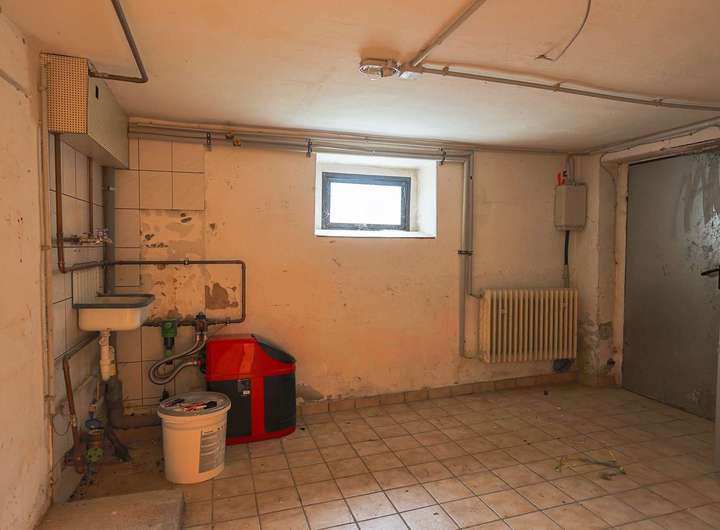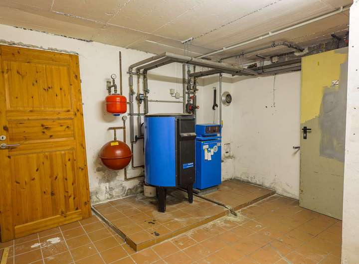 Im Keller sind weitere vier Räume, die unterschiedlich genutzt werden können. Einer davon wurde als Werkstatt genutzt. Der Heizungsraum mit der Brennwert-Gasheizung aus 2013 befindet sich im hinteren Kellerbereich. Einer der zwei Garagen befindet sich im Haus, die andere im Hof.