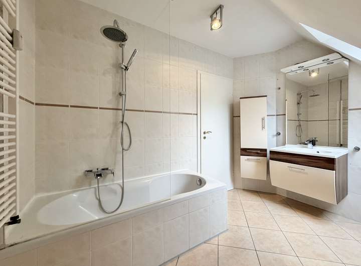 - zwei Terrassen (Südost, Nordwest), große Dachterrasse (Südwest, teilbar)