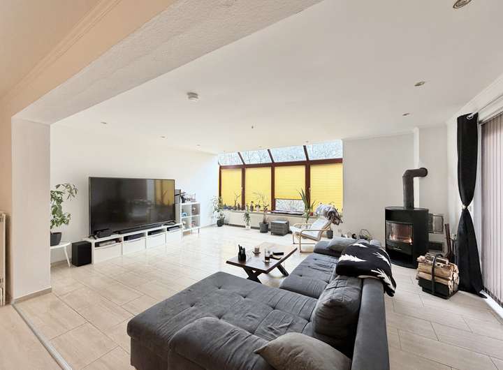 - Wohnzimmer mit Kaminofen im Erdgeschoss