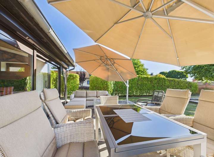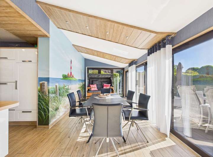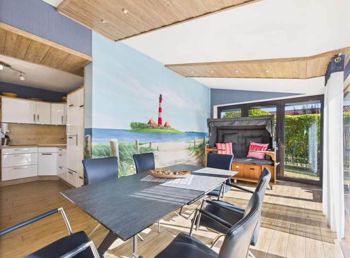 Großzügiger Wohn- und Essbereich mit hellem Wintergarten