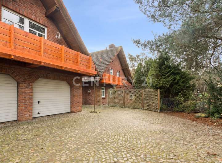 Für Komfort und Funktionalität im Alltag stehen zudem eine Doppelgarage sowie weitläufige Außenflächen zur Verfügung, die vielfältige Gestaltungsmöglichkeiten bieten.