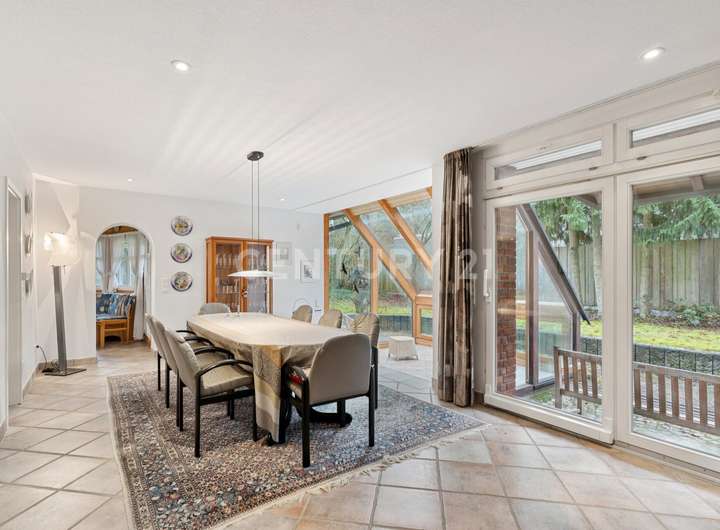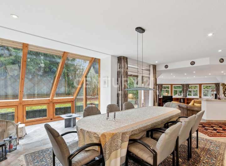 Dieses außergewöhnliche Einfamilienhaus aus dem Jahr 1994 vereint Großzügigkeit, handwerkliche Qualität und eine absolut privilegierte Wohnlage. Auf rund 239 m² Wohnfläche und einem beeindruckenden ca. 2.223 m² großen Grundstück entsteht ein Wohnambiente, das seinesgleichen sucht – perfekt für alle, die viel Raum, Privatsphäre und stilvolle Details schätzen.