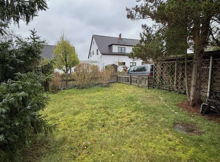 Der gepflegte Bungalow wurde Ende der 1980er Jahre in solider Fertigbauweise errichtet und steht auf einem rund 570 m² großen Grundstück in ruhiger, zurückgesetzter Lage. Das Grundstück verfügt über eine nahezu rechteckige Form und bietet trotz kompakter Größe vielfältige Nutzungsmöglichkeiten für Garten, Terrasse und Stellflächen.