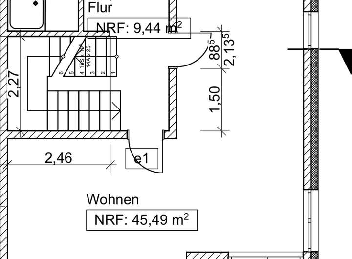 Jede Haushälfte bietet ca. 112 m² Wohnfläche auf Erd- und Obergeschoss sowie zusätzlich ca. 64 m² Nutzfläche im hellen Keller mit Lichtschächten.