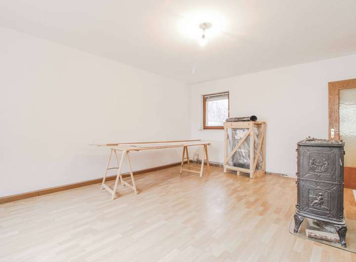 + Komfort entsteht durch eine solide Ausstattung des Hauses, welche eine Einbauküche, einen Kaminofen, Parkett- und Echtsteinböden umfasst